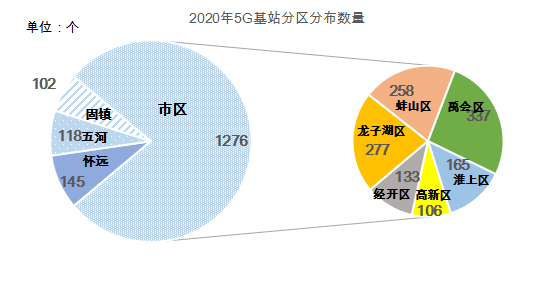 蚌埠快速推进5G基站建设进程,5G基站建设自2019年起步、2020年全面加速,截至2020年12月,完成5G基站建设1641个,比2019年增长355.8%。目前,5G网络已覆盖蚌埠市核心商圈、风景区、交通枢纽及县城核心区域,助力蚌埠的消费产业升级;同时对包括电子41所、大富机电进行工业级5G网络覆盖,助力蚌埠的工业升级。