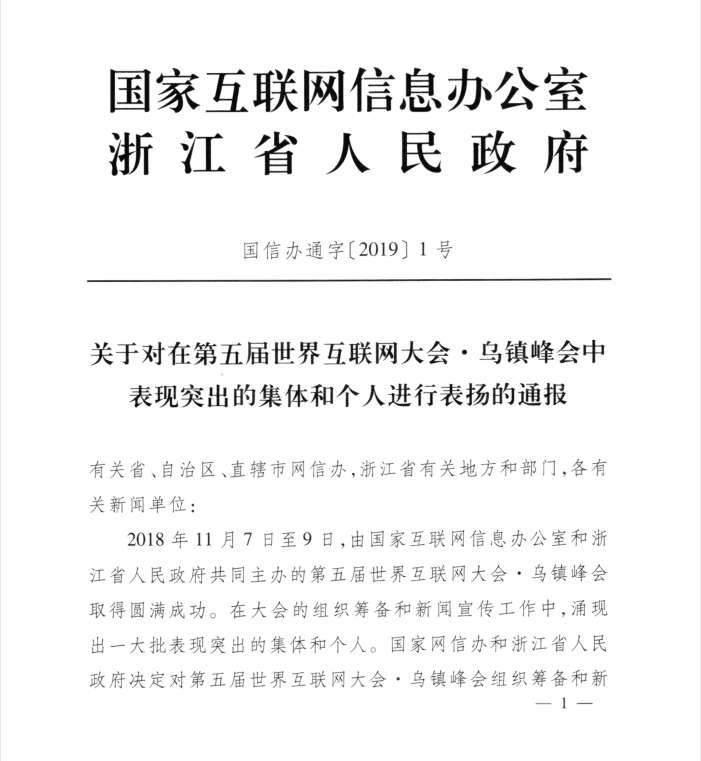 【中央网信办表彰安徽省委网信办】安徽网信办入选“第五届世界互联网大会·乌镇峰会新闻宣传突出贡献集体”