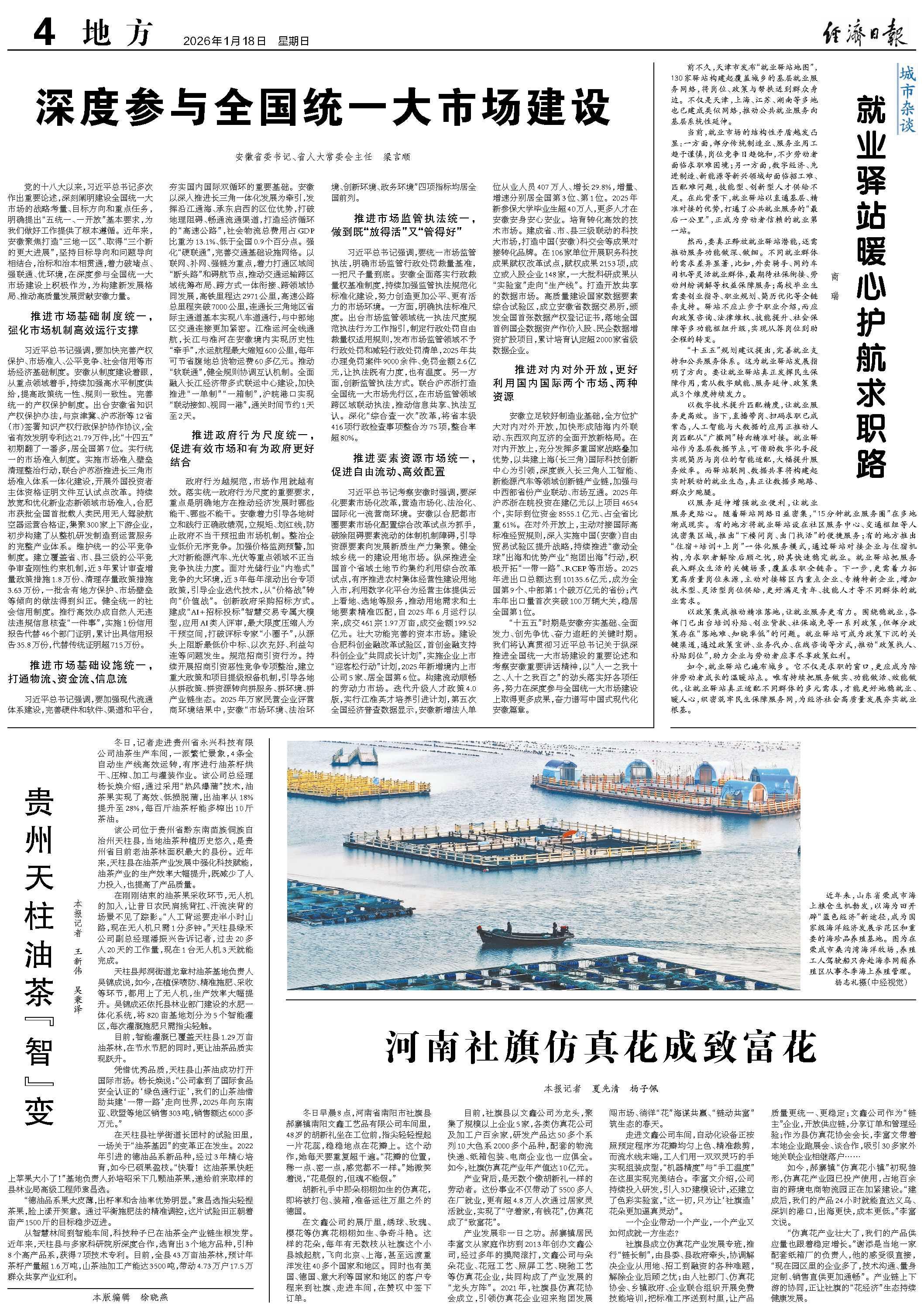 “十五五”时期是安徽夯实基础、全面发力、创先争优、奋力追赶的关键时期。我们将认真贯彻习近平总书记关于纵深推进全国统一大市场建设的重要论述和考察安徽重要讲话精神,以“人一之我十之、人十之我百之”的劲头落实好各项任务,努力在深度参与全国统一大市场建设上取得更多成果,奋力谱写中国式现代化安徽篇章。