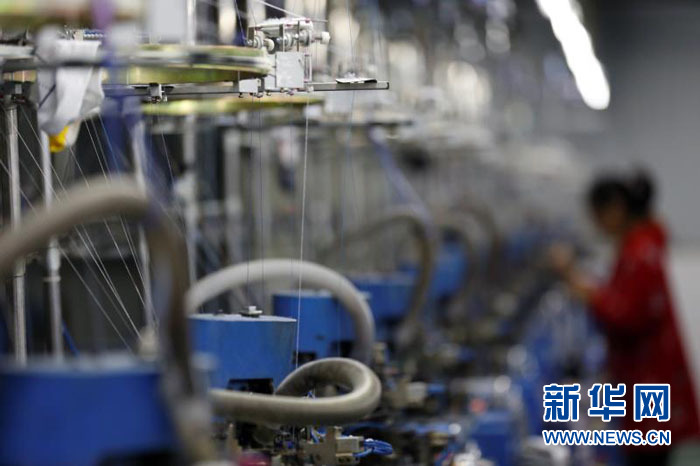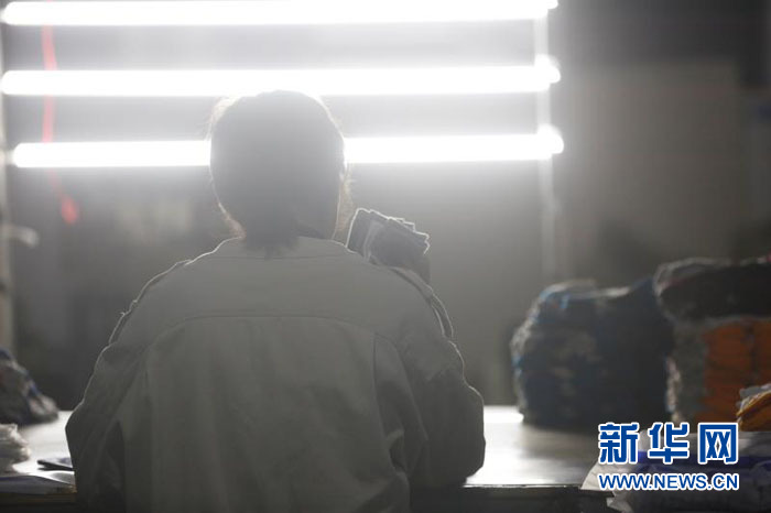 4月21日晚,工人正在扶贫车间里加班生产。新华网发(陈扬 摄)