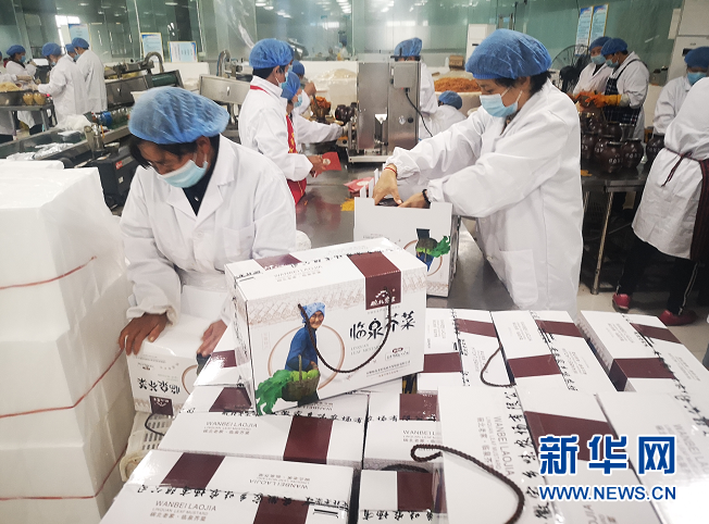 临泉县碗北老家农业开发有限公司员工加紧为旺销的芥菜产品包装准备发运。新华网 王雷 摄