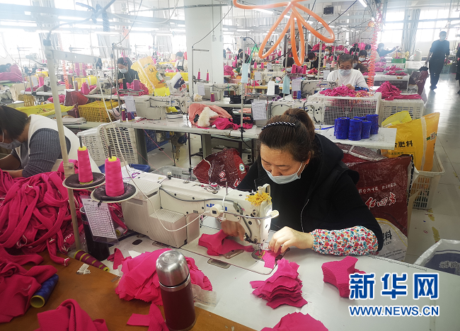 临泉县开发区的一家服装企业加紧疫情后的复工复产。新华网 王雷 摄