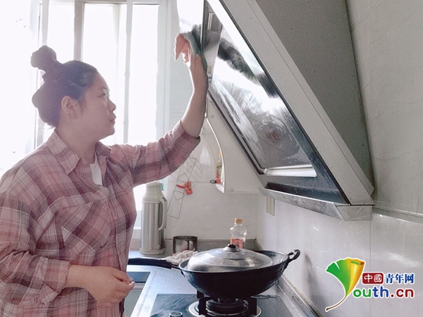 除了叠被子,这个将近一米九的大男生还包揽了饭后洗碗和扫地等家务。“我们都长大了,有义务为家里人分担家务劳动,而且家中小事也能够锻炼自己的耐心和细心。”