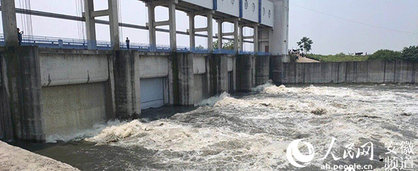 邱家湖开闸蓄洪 颍上县防汛抗旱指挥部供图