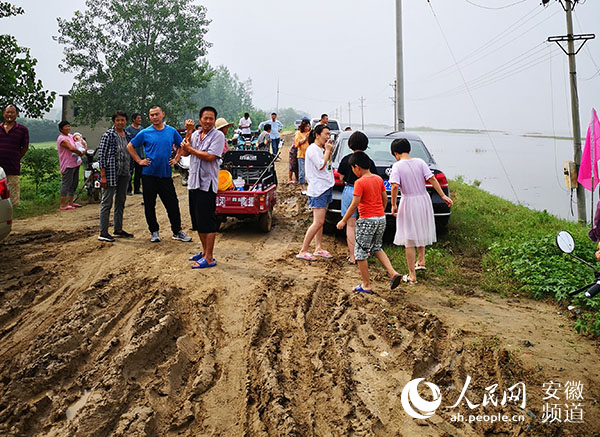 7月20日上午,在蓄洪前,颍上县南润段蓄洪区群众被疏散到堤坝上。郑兰鹏摄